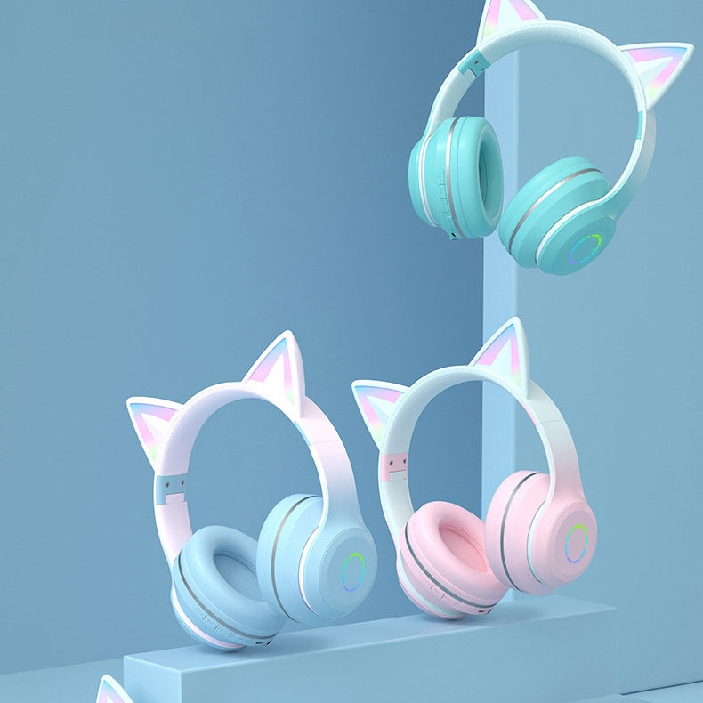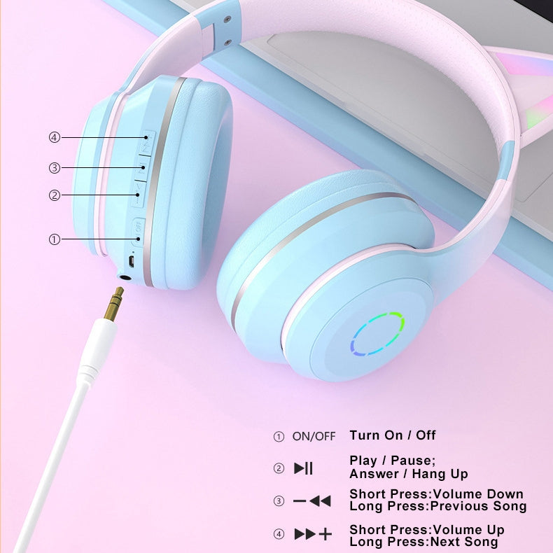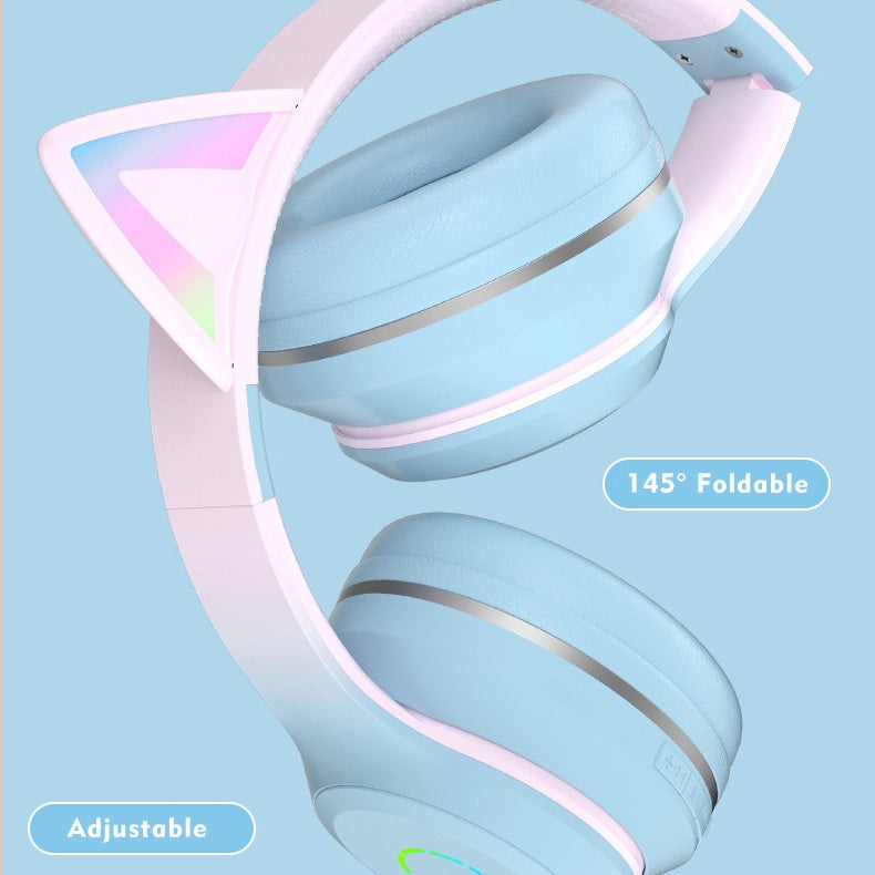 Bluetooth 5.1 Wireless Stereo Bass Surround Foldable Cute Headset with Backlit for Windows / Mac